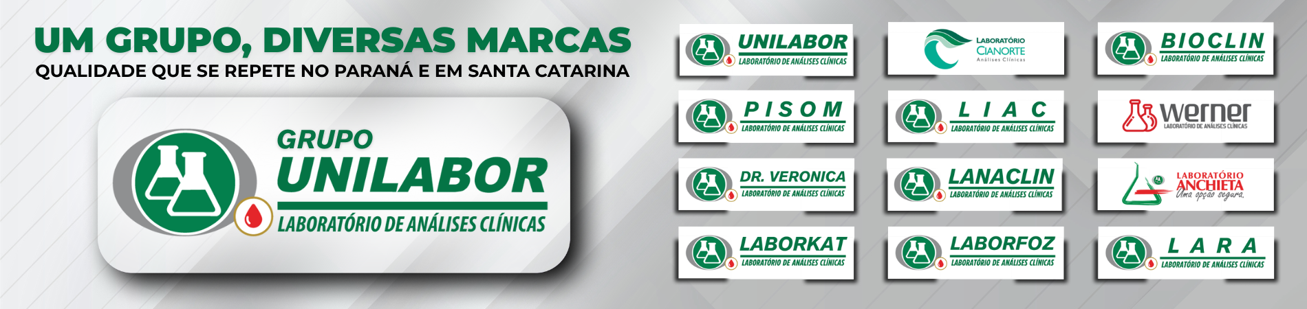 O Grupo UNILABOR é composto por marcas que atuam de forma integrada em diferentes cidades do Paraná e de Santa Catarina, mantendo o mesmo padrão de qualidade, tecnologia e segurança em todas as unidades.